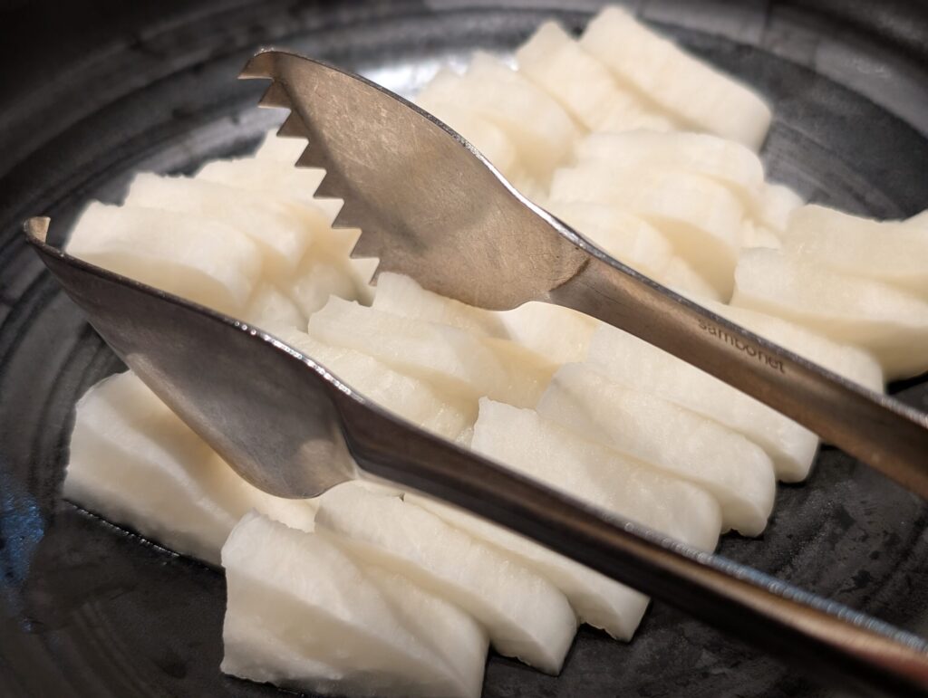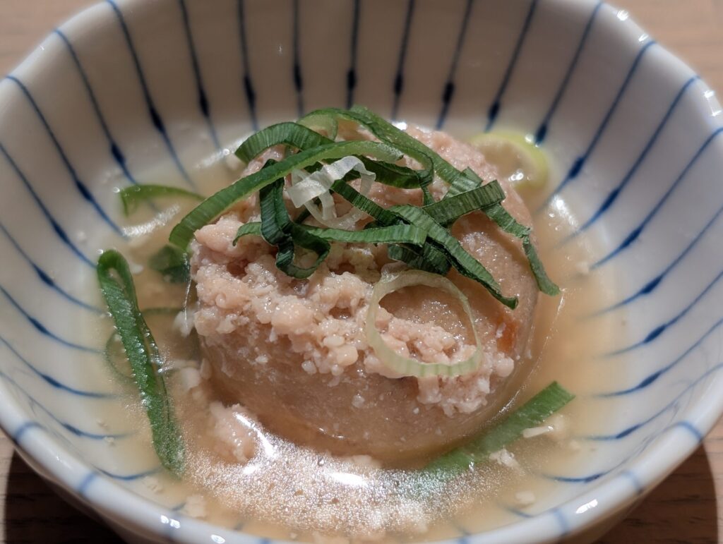 噛むたびに旨味が溢れる鶏肉と、その出汁が染み込んでとろける柔らかさの大根がたまらない「鶏と大根の煮物」。