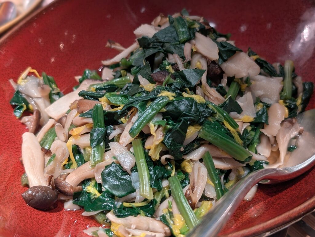 こちらは「なにわの伝統野菜」として知られるあっさりとした葉野菜のしろなを使ったモーニングショットです。