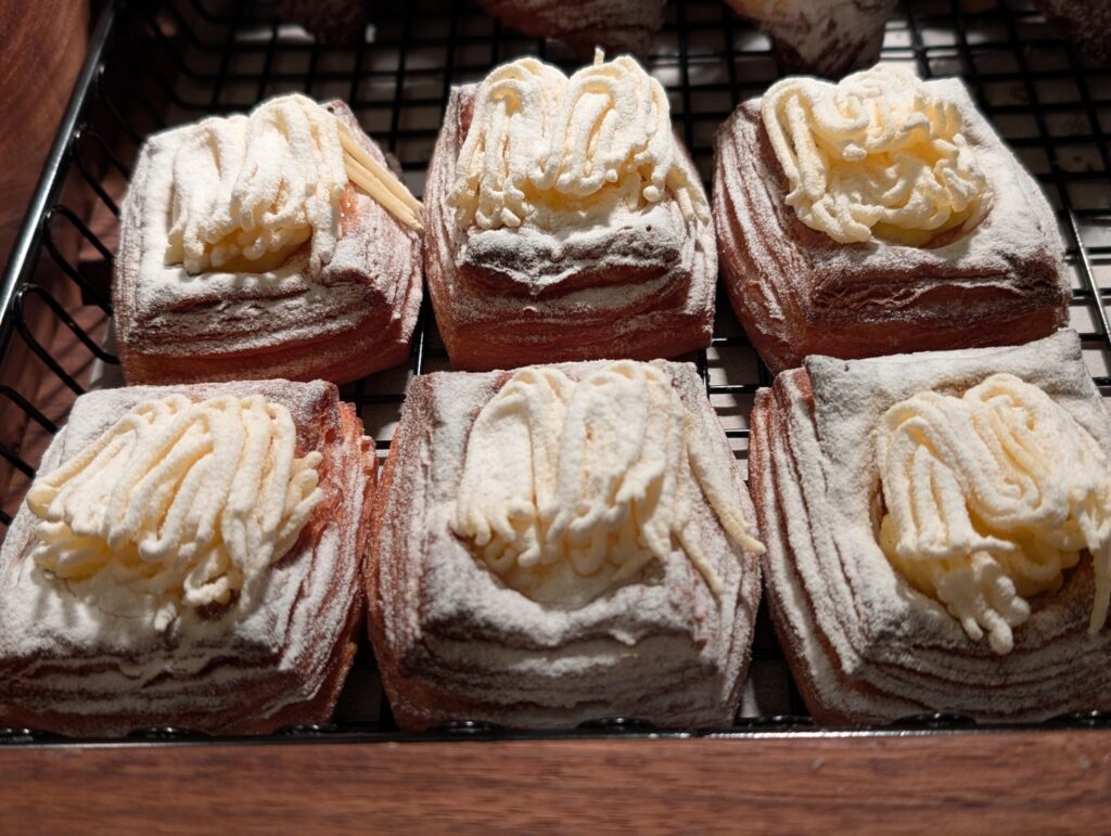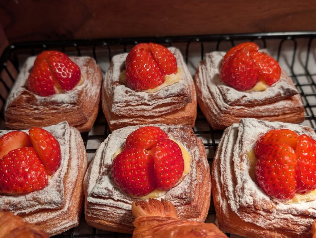 いちごの酸味と甘すぎないカスタード、サクサクの食感が折り重なるデニッシュ生地でお口の中が幸せになるパンです!