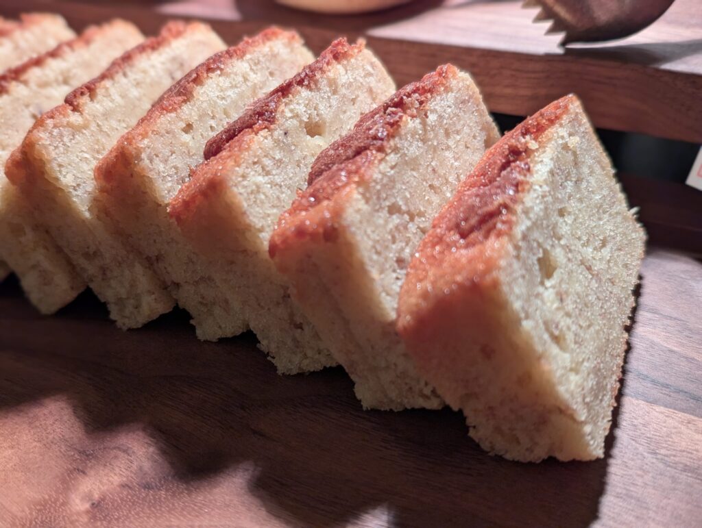 厚切りのパンにしっかりと染み込んだ卵液の甘さと表面のバターの香ばしさが癖になる一品。