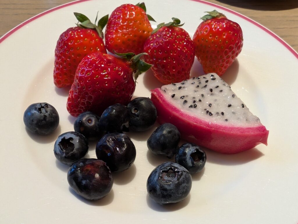 デザートも色鮮やかで新鮮なフルーツや、先ほど紹介したオーダー形式の品々に加え、チアシードやフルーツソースをかけたヨーグルトなどいただきました!
