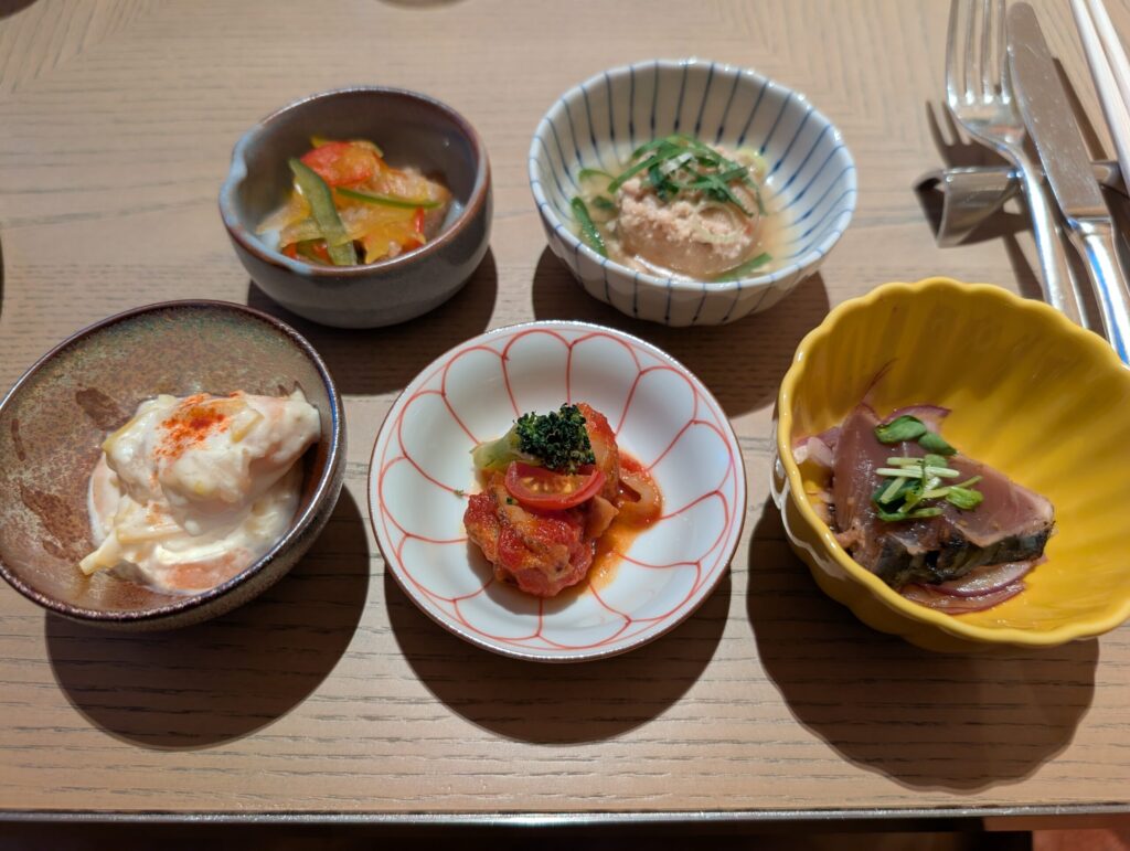 あれだけ美味しそうなものが並んでいたらとりあえず取ってしまうよね、という気持ちで全部いただいた小鉢たち…。本当にどれも美味しくて何回取りに行ったことやらという感じです。