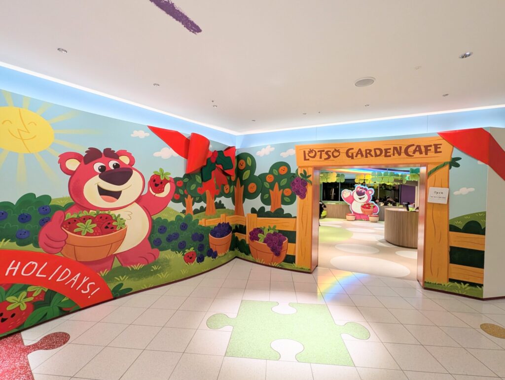 トイ・ストーリー内のキャラクター、ロッツォをモチーフホテル内レストランの「ロッツォ・ガーデンカフェ」は宿泊者限定で利用可能なレストランです。