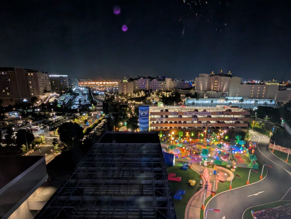 ありがたいことに、スリンキー・ドッグパークの眺めが楽しめるお部屋で、閉園後も楽しい気分そのままに過ごすことができました!
