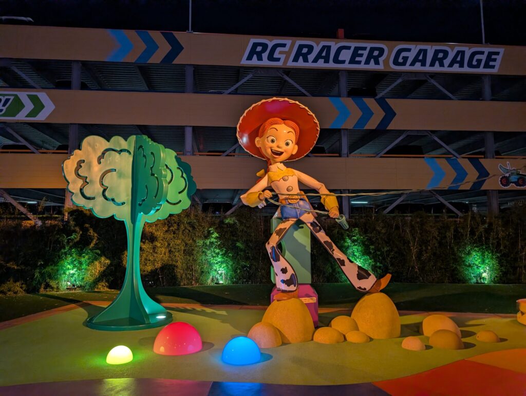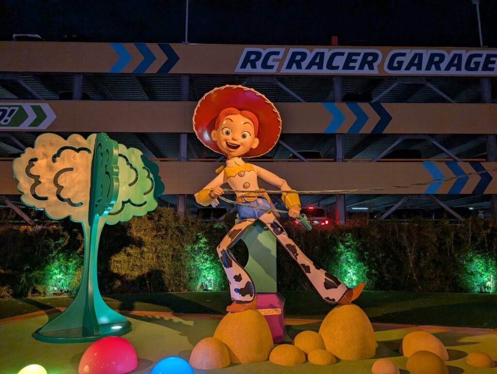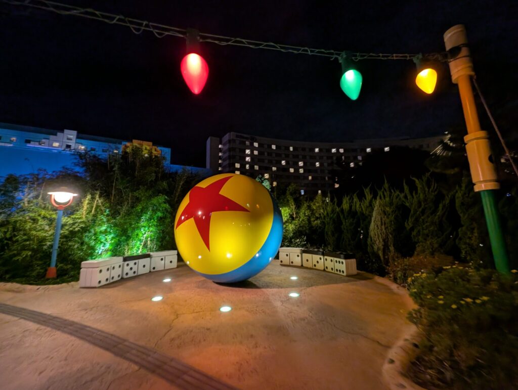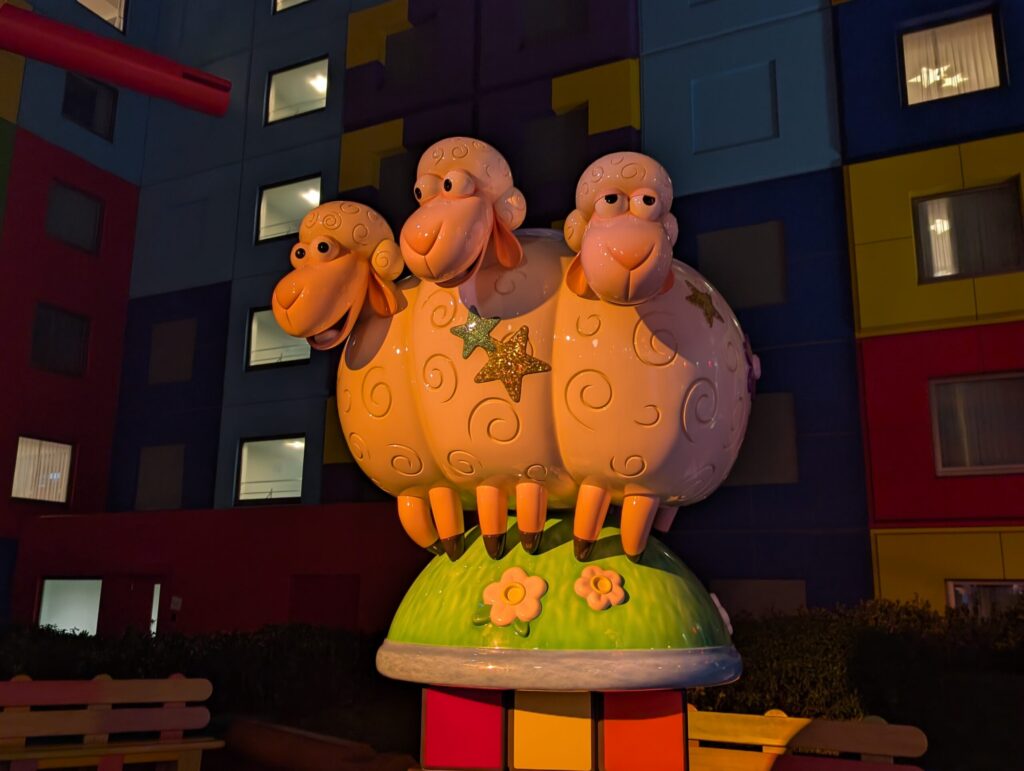 トイ・ストーリーホテルの敷地に入ってまず最初に迎えてくれるスリンキー・ドッグパークは様々なキャラクターやおもちゃが並んでいています。
