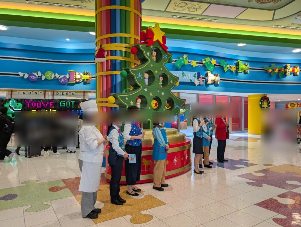 チェックアウト時間帯にはホテルのキャストの方々が一緒に写真撮影をしてくれるイベントを行っていました。素敵なユニフォームに身を包んだキャストの方々と撮った写真は大切な思い出になりそうです!