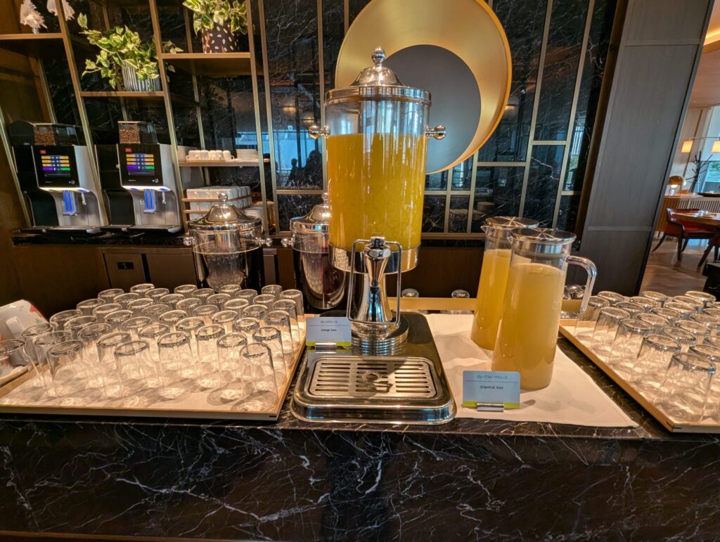コーヒーや茶類、オレンジジュースなど選択肢も多く、不自由なく利用できます。