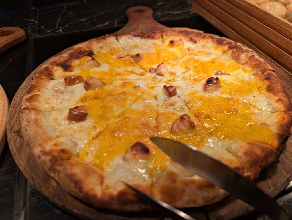チーズピザのそばには蜂蜜も用意されていて、味変も可能でした。