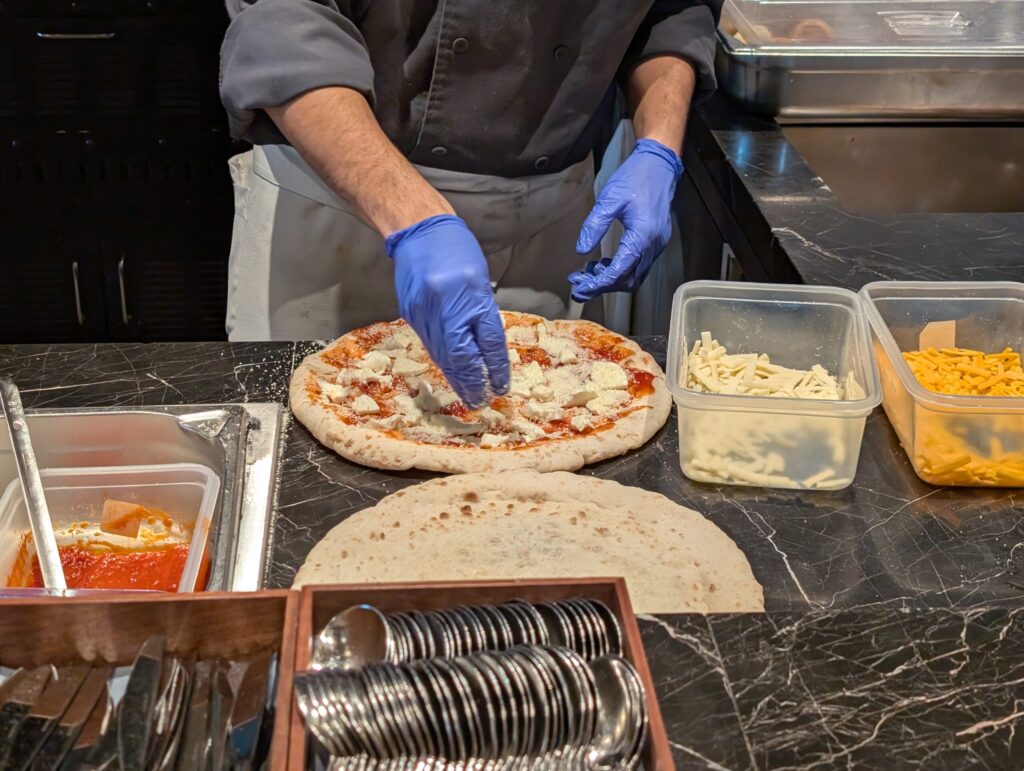 続いてはピザです。この日はチーズピザとソーセージピザが提供されていました。