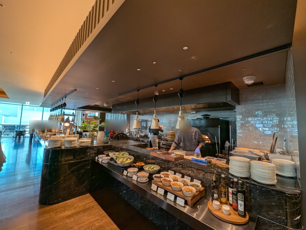 料理提供エリアは大きなキッチンとなっており、シェフの方々が料理を準備する様子を見ることができ、ライブ感たっぷりです。