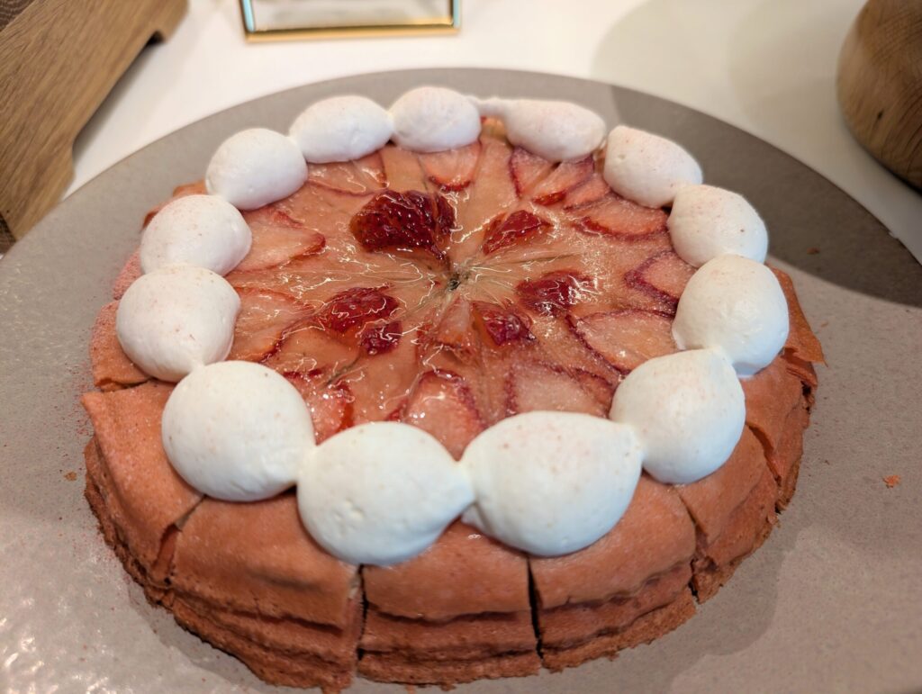 見た目の優しい色味と同様にいちごの甘味と酸味が優しく感じられる軽い食感のムースと、しっとりめのクランブルが楽しめるスイーツでした。