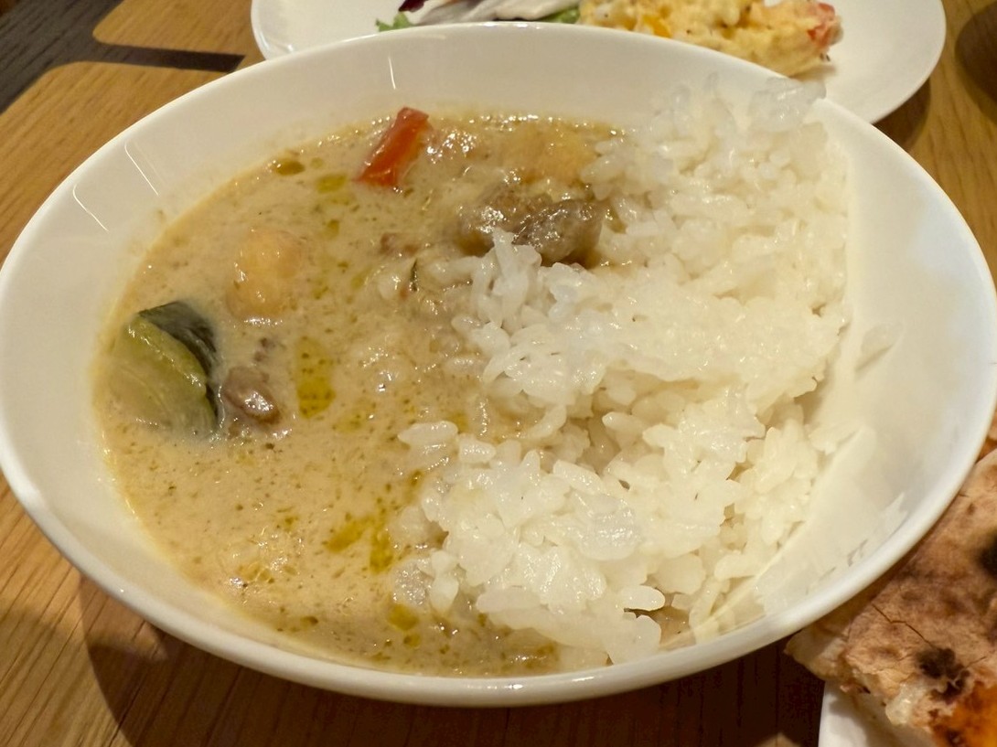 公式サイトの記載ではウェスティンホテル横浜特製カレー、牛肉と豆のレッドカレー、マッサマンチキンカレーとの記載がありましたが、この日はグリーンカレーでした。